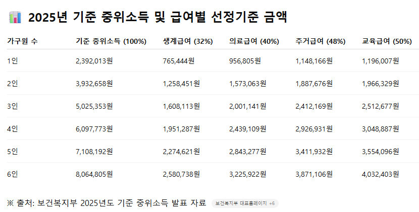 - 2025년 기준 중위소득(1인가구) : 약 2,153,000원